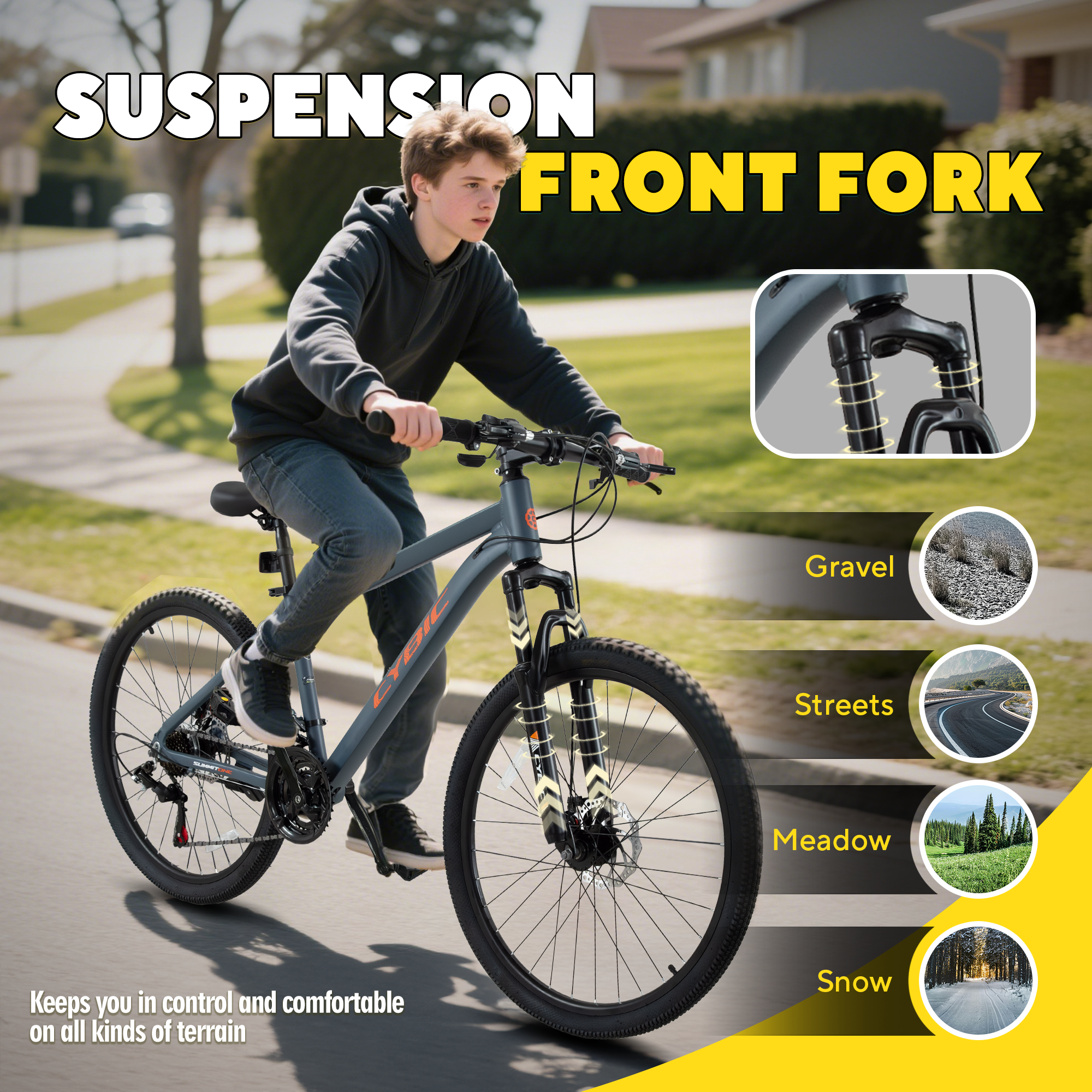 Uma forquilha sólida de ferro melhora a estabilidade e o controlo da frente, ajudando-o a enfrentar caminhos irregulares, estradas de cascalho e ambientes urbanos com facilidade.
